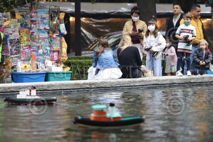 Niños juegan con barcos a escala en el Parque Lincoln de Polanco.