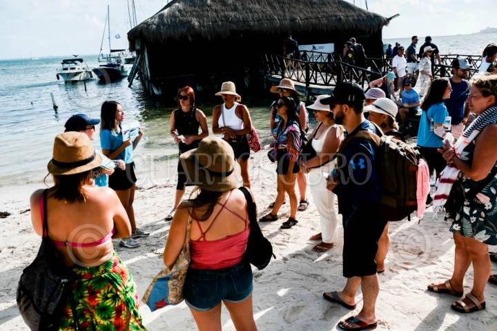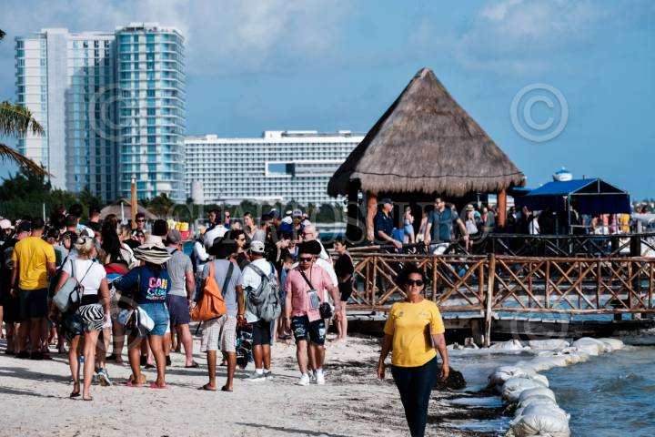 CANCÚN, QUINTANA ROO. 26ENERO2024.- Turistas se reúnen en playa "Las Perlas" para disfrutar de paseos en barcos turísticos. Visitantes extranjeros y nacionales disfrutan del clima en primeras horas de la mañana. FOTO: ELIZABETH RUIZ/CUARTOSCURO.COM