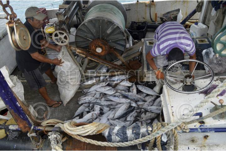 CANCÚN, QUINTANA ROO, 07DICIEMBRE2015.- Pescadores de barcos camaroneros y pesqueros realizan labores cotidianas mientras están en el muelle en Puerto Juarez. FOTO: ELIZABETH RUIZ /CUARTOSCURO.COM
