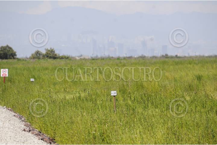 CIUDAD DE MÉXICO, 04AGOSTO2016.- Terrenos donde será el nuevo aeropuerto internacional de la Ciudad de México (NAICM) en la zona federal del ex-vaso de Texcoco. La barda perimetral que rodea la construcción mide 33 kilómetros y avanza en cuatro frentes (norte, sur, oriente y poniente). FOTO: DIEGO SIMÓN SÁNCHEZ /CUARTOSCURO.COM