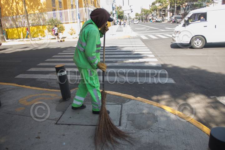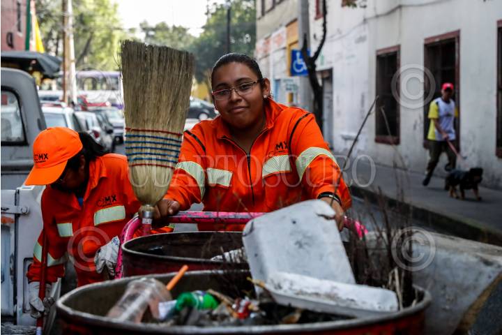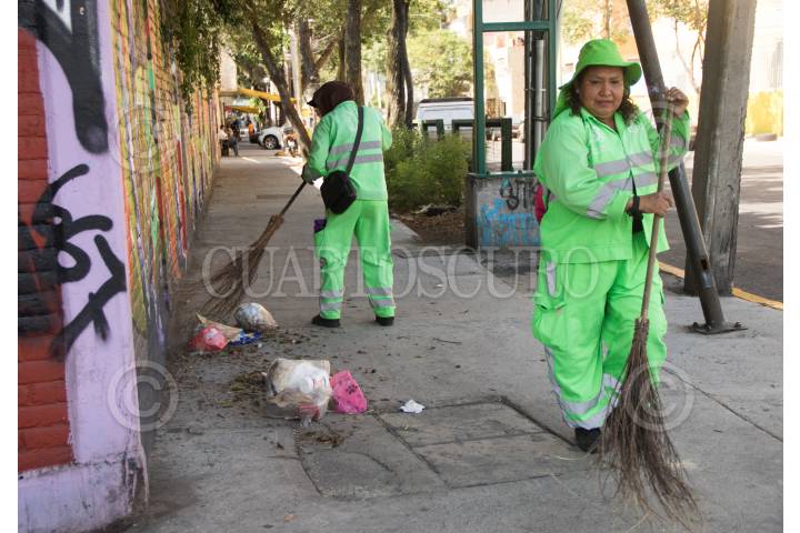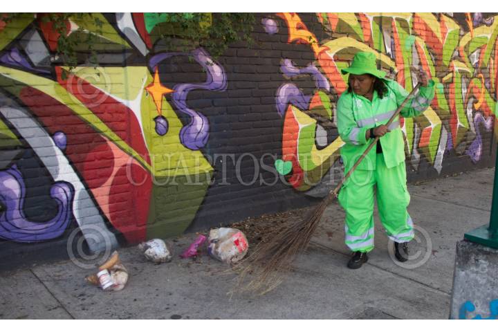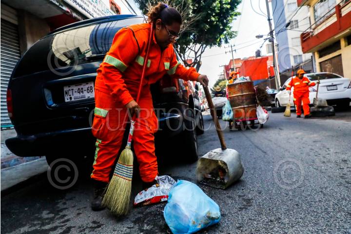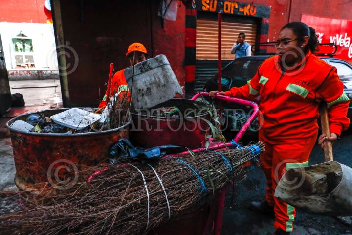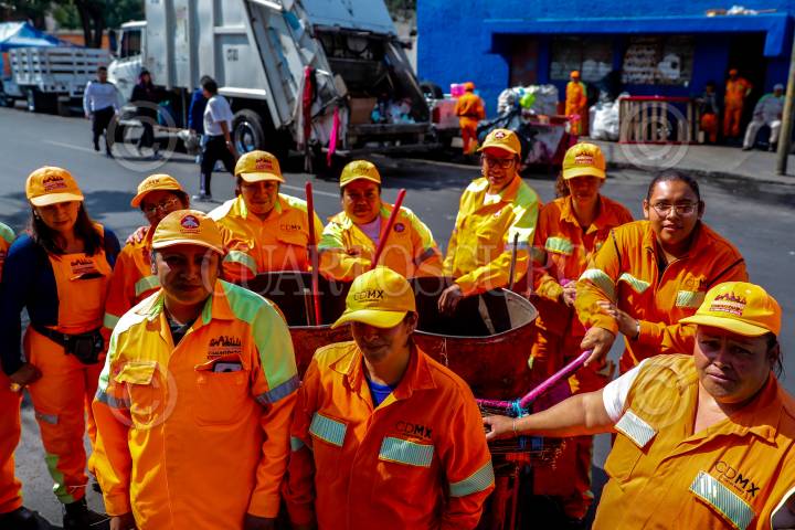 CIUDAD DE MÉXICO, 19AGOSTO2019.- Una cuadrilla de 11 mujeres recorre las calles de la alcaldía Cuauhtémoc barriendo con su escobas desde las 7:00 de la mañana en las principales colonias del centro histórico y las cuales son catalogadas como las mas peligrosas en cuestión de seguridad (Tepito-Morelos-Peralvillo). La mujeres integrantes de esta brigada aseguran que los vecinos de dichos lugares donde trabajan diariamente las ven con orgullo y respeto por lo que nunca han sufrido de alguna agresión y eso las motiva a seguir trabajando con mayor esfuerzo diariamente en esta ciudad que es de las que mas basura genera a nivel mundial. FOTO: URIEL GUADARRAMA /CUARTOSCURO.COM
