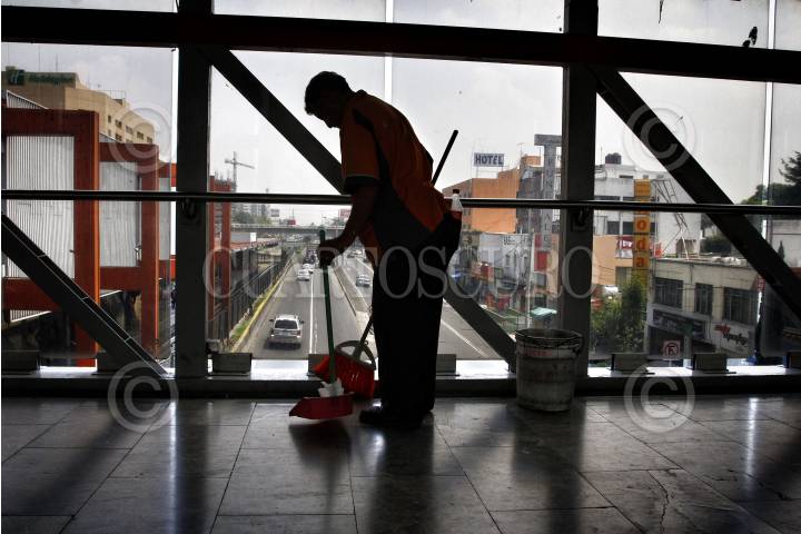 MÉXICO, D.F., 05AGOSTO2015.- Un trabajador del STC Metro barre uno de los andenes de la estación Ermita, de la Línea 2. FOTO: ISAAC ESQUIVEL /CUARTOSCURO.COM