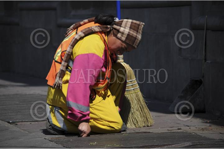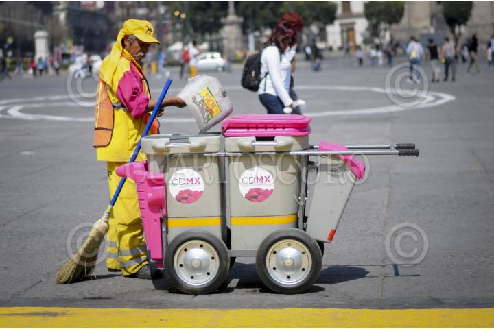 CIUDAD DE MÉXICO, 09FEBRERO2017.- El escuadrón de limpia del centro histórico recoge la basura de las calles en el zócalo capitalino. FOTO: DIEGO SIMÓN SÁNCHEZ /CUARTOSCURO.COM