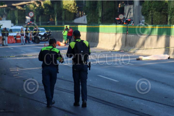 CIUDAD DE MÉXICO, 17ABRIL2024.- Un trabajador de limpieza que se encontraba barriendo carriles centrales del Periférico fue atropellado, lo que provocó su muerte. El cuerpo de la víctima quedó tendido sobre está arteria a la altura de calle de Yucatán, en la alcaldía Álvaro Obregón. El responsable fue un automovilista que circulaba a roda velocidad y se dio a la fuga. FOTO: ROGELIO MORALES/CUARTOSCURO.COM