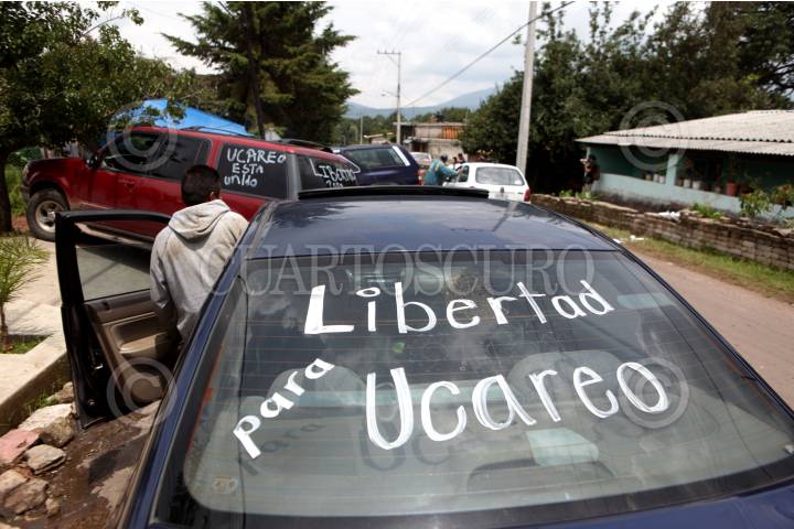 ZINAPÉCUARO, MICHOACÁN, 07JULIO2015.- En la comunidad de Ucareo, habitantes instalaron barricadas para cerrar el paso a los delincuentes y fuerzas policiacas que mantienen asolada a la región. Esto después de que tres personas fueron detenidas acusadas de haber asesinado y colgado de un puente a dos secuestradores el pasado fin de semana. Los pobladores exigen al Poder Judicial que libere a las personas detenidas por la Procuraduria de Justicia del Estado (PGJE). FOTO: ALAN ORTEGA /CUARTOSCURO.COM