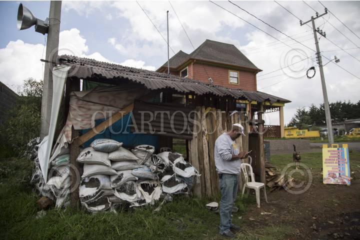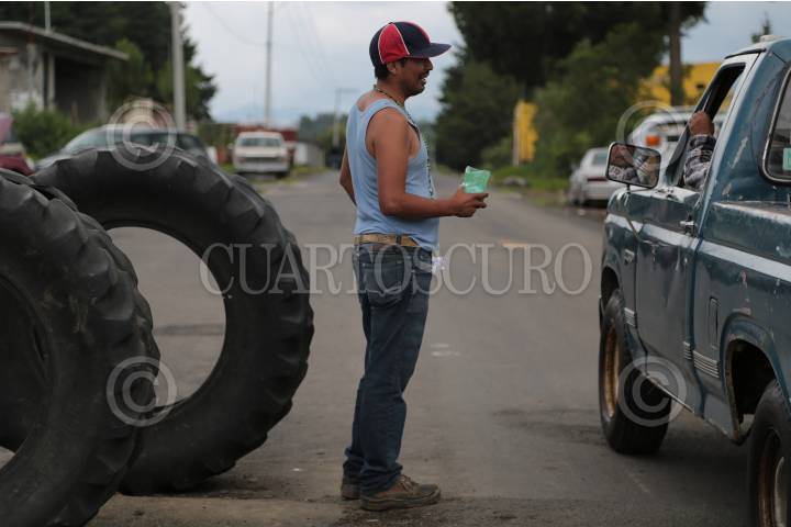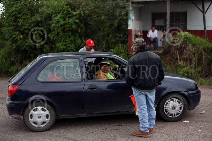 NAHUATZEN, MICHOACÁN, 26JULIO2016.- Pobladores y miembros del Consejo Comunal, continuan esperando que se cumplan las promesas que hizó el gobernador, Silvano Aureoles Conejo, después de que el conflicto llegó a su punto más álgido el pasado mes de mayo con quema de vehículos de empresas privadas. Denuncian que los secretarios de estado dejaron de responder las llamadas de teléfono y que las acciones se desarrollan de una manera muy lenta. Amenazan con emprender acciones radicales si el gobierno estatal continua con la misma política. En la imagen un miembro de la Policía Comunitaria vigila y pide cooperación en una de las entradas a la cabecera municipal. FOTO: ALAN ORTEGA /CUARTOSCRUO.COM