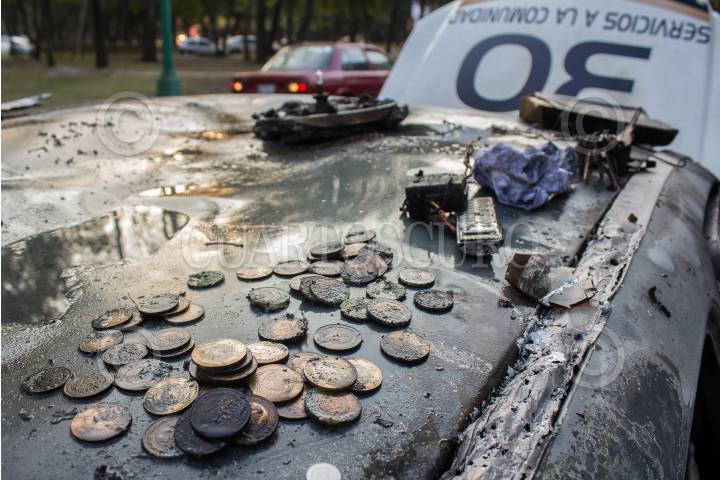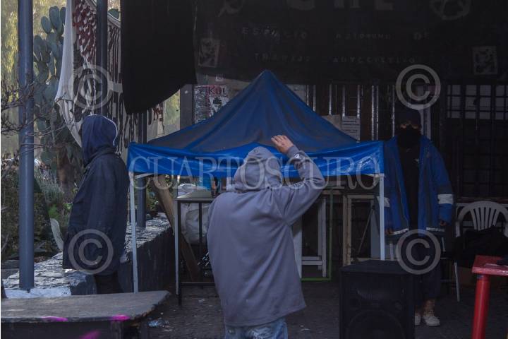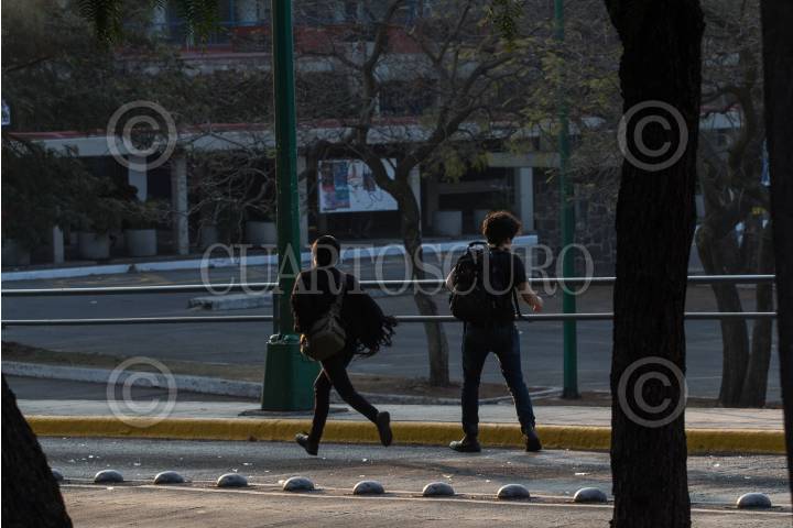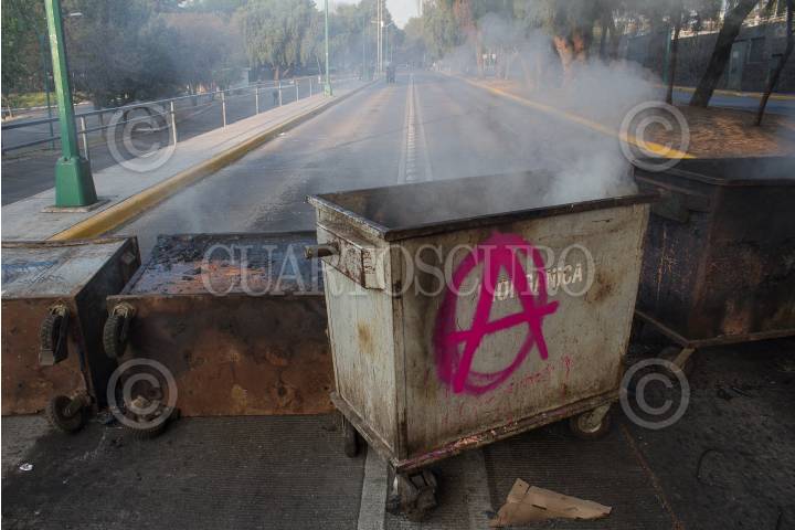 CIUDAD DE MEXICO, 25FEBRERO2016.- Jóvenes encapuchados cerraron el tránsito vehicular en Ciudad Universitaria, a la altura de la Facultad de Filosofía y Letras de la UNAM. Los jóvenes incendiaron una unidad de Vigilancia UNAM. Además, causaron destrozos, colocaron barricadas e incendiaron llantas para protestar contra la detención de quien reconocen como "el Compañero George", presuntamente detenido de manera extraoficial en las inmediaciones del campus universitario la noche de ayer. Autoridades han confirmado ya la detención del susodicho, quien se encuentra resguardado por la PGR. FOTO: DAVID POLO /CUARTOSCURO.COM