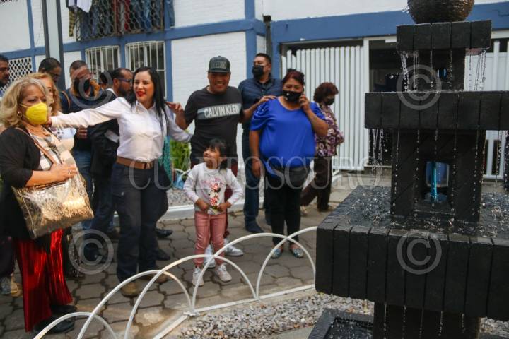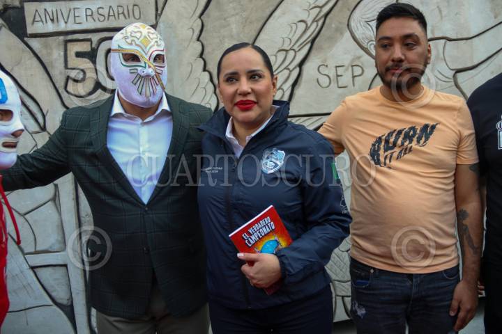 La alcaldesa Sandra Cuevas en la inauguración del Mural más grande de Tepito, en la secundaria técnica 42 de la colonia Morelos.