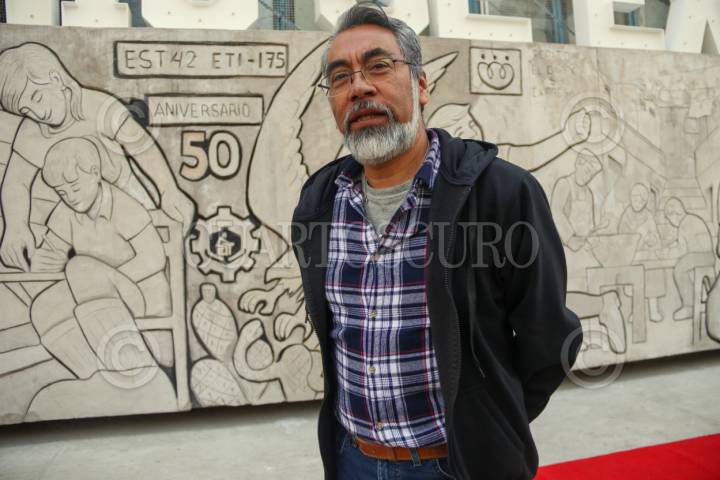 Marco Vargas, muralista en la inauguración del mural más grande de Tepito.