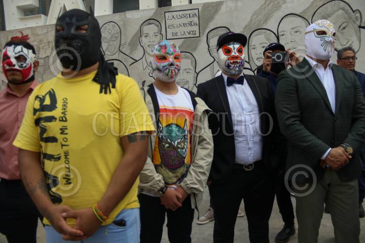Artistas vecinos y otros personajes del barrio bravo en la inauguración del mural más grande de Tepito.