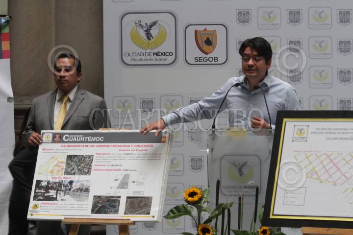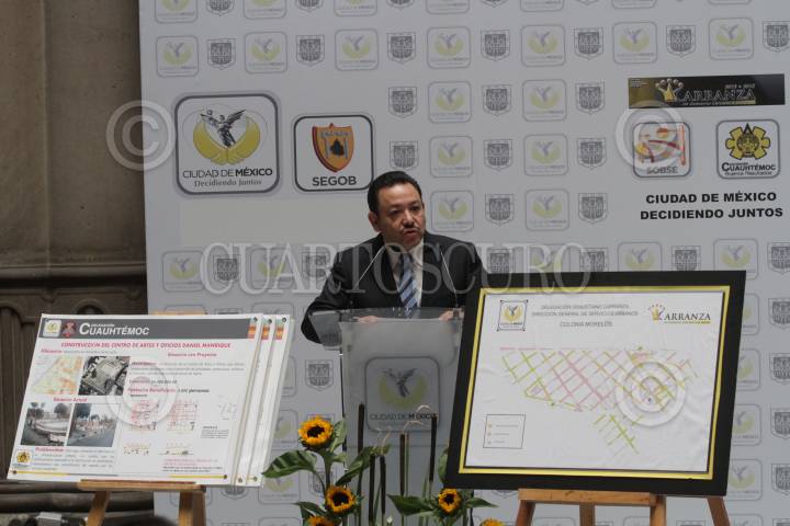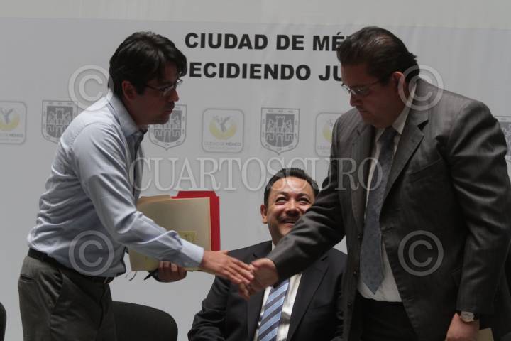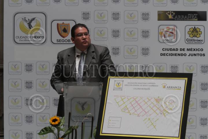 MÉXICO, D.F., 10JUNIO2013.- Los Jefes delegacionales de Cuauhtémoc, Alejandro Fernández, y de Venustiano Carranza, José Manuel Ballesteros, y el secretario de Gobierno, Héctor Serrano, presentaron el “Proyecto Morelos” para anunciar el rescate de esta colonia y del barrio de Tepito con la participación ciudadana en coordinación con Gobierno del Distrito Federal y ambas delegaciones. El acto se llevó a cabo en el antiguo Palacio del Ayuntamiento, sede del Gobierno del Distrito Federal. FOTO: JUAN PABLO ZAMORA /CUARTOSCURO.COM