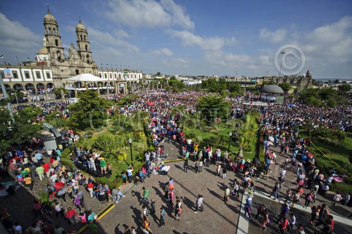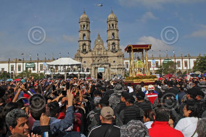 GUADALAJARA, JALISCO, 12OCTUBRE2015.- Hoy y como cada año se llevo a cabo la Romería 2015, a la cual acudieron aproximadamente 1 millón y medio de asistentes que acompañaron a La Generala hasta la Basílica de Zapopan, el recorrido desde la Catedral metropolitana de Guadalajara hasta su Santuario en la ex villa Maicera en ya mencionado municipio transcurrió con un saldo blanco, solo algunos incidentes mínimos como atenciones medicas. FOTO: FERNANDO CARRANZA GARCIA /CUARTOSCURO.COM