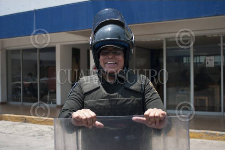 MÉXICO, D.F. 09MAYO2014.- El personal femenido de la base Atenea se arregla para salir a la formación. FOTO: IVÁN STEPHENS /CUARTOSCURO.COM