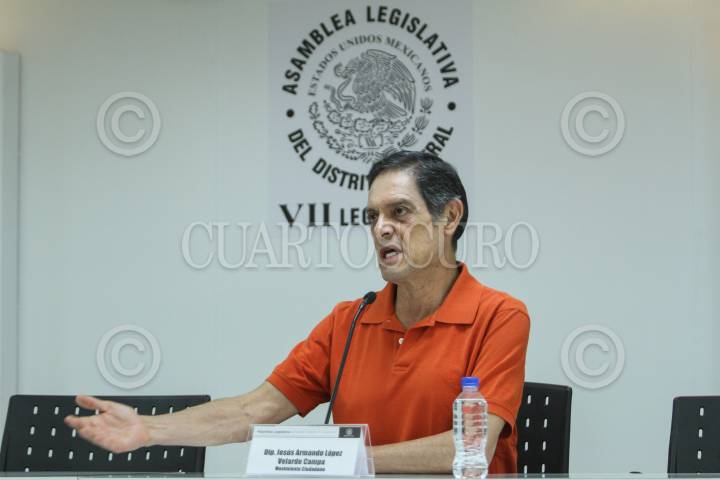 MÉXICO, D.F., 16NOVIEMBRE2015.- Jesús Armando López Velarde Campa, diputado en el Distrito Federal por Movimiento Ciudadano durante una conferencia de prensa, para anunciar su apoyo a los nueve pueblos de Milpa Alta en la resistencia y defensa de sus tierras, ante la llegada de marinos, soldados y granaderos en la zona. Los pobladores han informado que se pretende construir una base naval en tierras comunales. FOTO: ISABEL MATEOS /CUARTOSCURO.COM