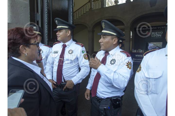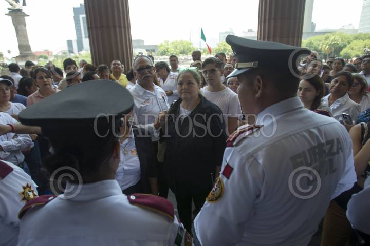MONTERREY, NUEVO LEÓN, 30JULIO2019.- Maestros de las Secciones 21 y 50 protestaron en el Palacio de Gobierno para exigir basificación de los trabajadores maestros, intendentes, bibliotecarios y contralores que laboran en un centro educativo bajo contratos, los cuales no cuentan como antigüedad, prestaciones, servicio médico ni pagos puntuales. Representantes de ambos sindicatos fueron recibidos por autoridades estatales para dialogar con ellos. FOTO: GABRIELA PÉREZ MONTIEL /CUARTOSCURO.COM