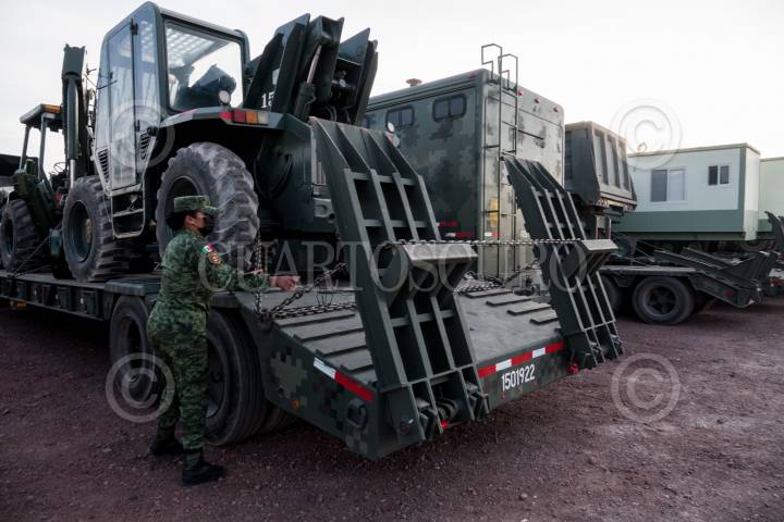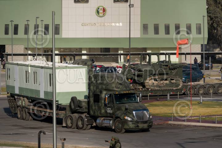 Durante las primeras horas del día, el primer convoy de ingenieros militares que participaron en la construcción del Aeropuerto Internacional Felipe Ángeles (AIFA) salieron de la Base Aérea Militar No.1 de Santa Lucía con dirección al sureste para continuar la construcción del Tren Maya.
