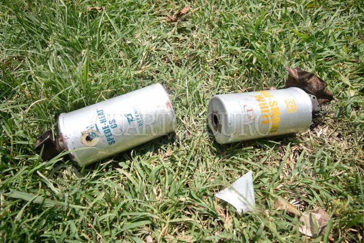 IGUALA GUERRERO, 18SEPTIEMBRE2023.- Estudiantes de la Escuela Normal Rural 'Raúl Isidro Burgos' de Ayotzinapa, Padres de los 43 y Normalistas de todo país en el 27 Batallón de Infantería del municipio de Iguala de la Independencia. La jornada de este lunes a las 12:30 horas estudiantes arribaron a bordo de 20 autobuses hasta la zona militar de Iguala, dónde comenzaron un mitin en el exterior el cual fue interrumpido elementos de la Guardia Nacional que se encontraban al interior. Los cuales, desde el interior, lanzaron granadas de gas lacrimógeno con químicos y de humo al exterior del cuartel para disipar la manifestación, en repuesta los estudiantes lanzaron explosivos caseros y arrojaron un urvan de transporte de personal de la empresa Coppel a la cual le intentaron prender fuego. El vehículo no logró impactar contra la puerta principal, por lo que se quedó a unos metros mientras los estudiantes se retiraron del lugar. FOTO: DASSAEV TÉLLEZ ADAME/CUARTOSCURO.COM