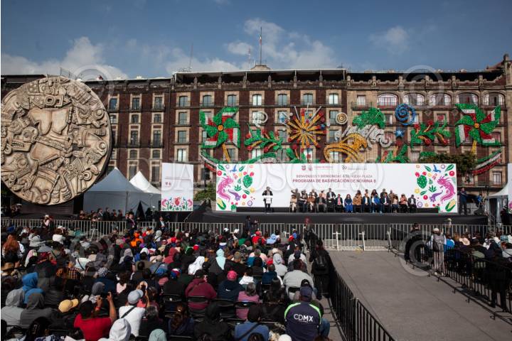 CIUDAD DE MÉXICO, 09SEPTIEMBRE2025.- Inicio del programa de Basificación de nómina 8 que se llevó a cabo en la plancha del Zócalo Capitalino. FOTO: ANDREA MURCIA /CUARTOSCURO.COM