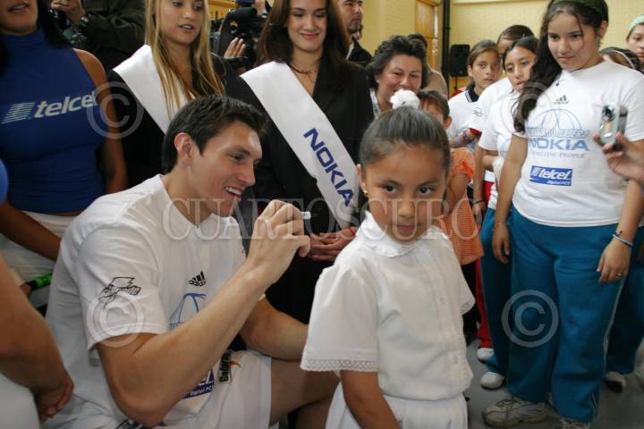 México, D. F. 11 Junio 2004.- El basquetbolista de la NBA de origen mexicano Eduardo Najera de los Mavericks de Dallas impartió una Clínica de basquetball en una secundaria de ésta ciudad y también se dió tiempo para firmar autografos. FOTO: Nelly Salas/CUARTOSCURO.COM