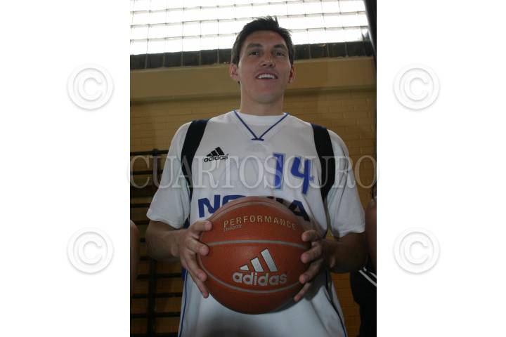 México, D. F. 11 Junio 2004.- El basquetbolista de la NBA de origen mexicano Eduardo Najera de los Mavericks de Dallas impartió una Clínica de basquetball en una secundaria de ésta ciudad, con el fin de alentar a la niñez al gusto por el deporte, estuvo acompañado por autoridades locales y el embajador de los Estados Unidos en México Tony Garza. FOTO: Nelly Salas/CUARTOSCURO.COM