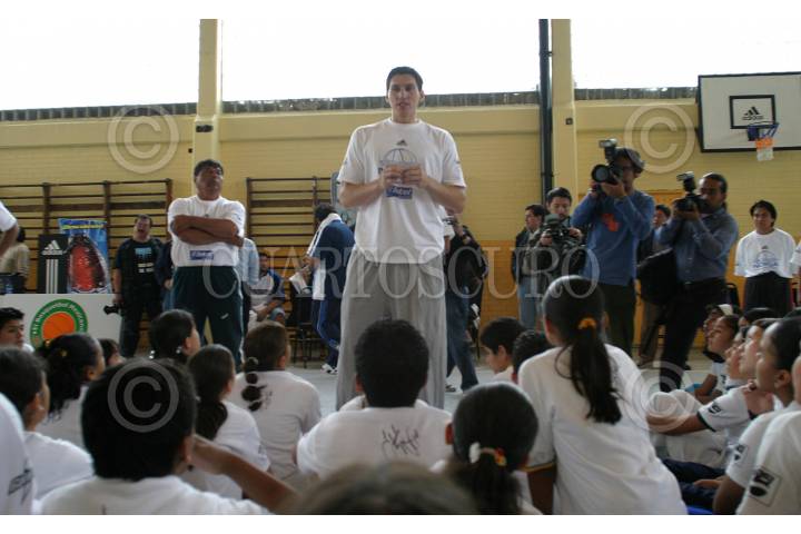 México, D. F. 11 Junio 2004.- El basquetbolista de la NBA de origen mexicano Eduardo Najera de los Mavericks de Dallas impartió una Clínica de basquetball en una secundaria de ésta ciudad, con el fin despertar el gusto por el deporte a los niños. FOTO: Nelly Salas/CUARTOSCURO.COM