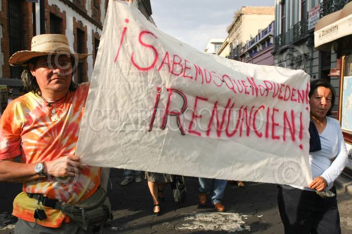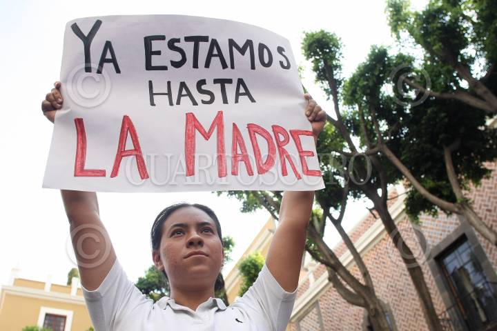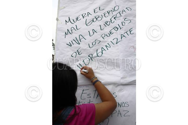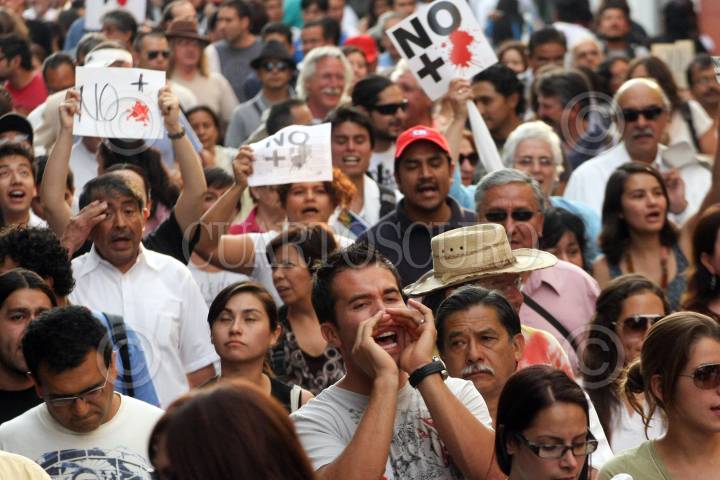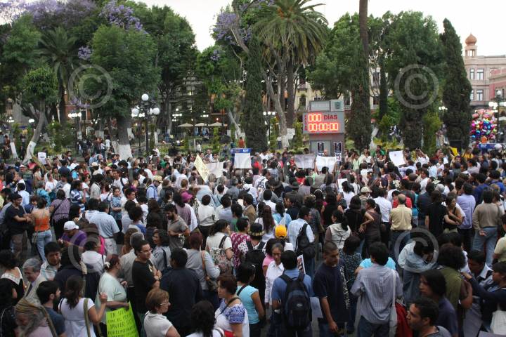 PUEBLA, PUEBLA, 06ABRIL2011.- Cientos de personas realizaron se reunieron en la Plaza de la Democracia para sumarse a la marcha contra la violencia. Con carteles, mantas y gritos la gente mostró su repudio ante la inseguridad que se vive en el país y el mal actuar de las autoridades. FOTO: FRANCISCO GUASCO/CUARTOSCURO.COM