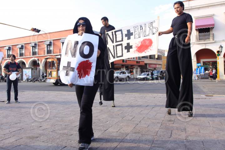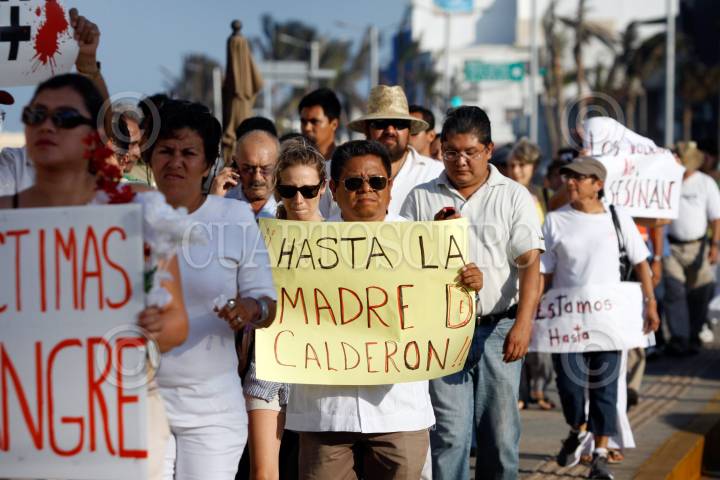 VERACRUZ, VERACRUZ, 06ABRIL2011.- Medio centenar de veracruzanos se reunieron en la Plaza de la Soberanía de este puerto para posteriormente marchar por el Boulevard Manuel Ávila Camacho y exigir un alto a la violencia que vive el país, los manifestantes gritaron consignas en contra de los grupos delictivos y de la guerra que encabeza el presidente Felipe Calderón, dicha protesta se suma a las marchas simultaneas en diferentes ciudades de la República y del mundo. FOTO: FÉLIX MÁRQUEZ/CUARTOSCURO.COM