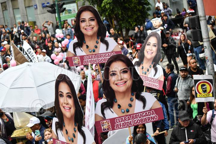 CIUDAD DE MÉXICO, 05OCTUBRE2024.- Simpatizantes de Clara Brugada, jefa de Gobierno, durante la "Caravana de la capital de la transformación" sobre calles del Centro Histórico. FOTO: MARIO JASSO/CUARTOSCURO.COM