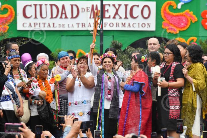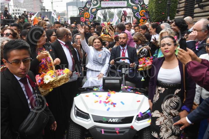 CIUDAD DE MÉXICO, 05OCTUBRE2024.- Clara Brugada, jefa de Gobierno, encabezó la "Caravana de la capital de la transformación" sobre la calle 5 de mayo hacia el palacio del Ayuntamiento, y la recepción del bastón de mando de pueblos originarios como parte de sus actividades por su reciente toma de posesión. FOTO: MARIO JASSO/CUARTOSCURO.COM