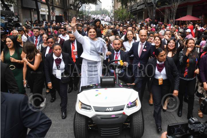 CIUDAD DE MÉXICO, 05OCTUBRE2024.- Clara Brugada, jefa de Gobierno, encabezó la "Caravana de la capital de la transformación" sobre la calle 5 de mayo hacia el palacio del Ayuntamiento, como parte de sus actividades de celebración por su reciente toma de posesión. FOTO: MARIO JASSO/CUARTOSCURO.COM