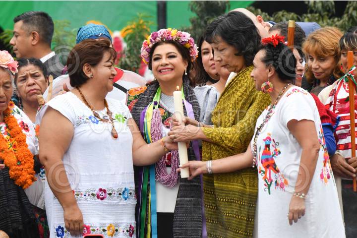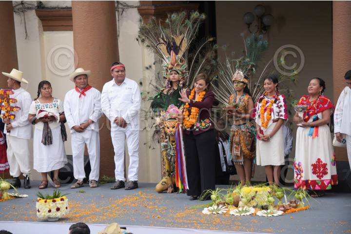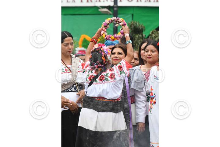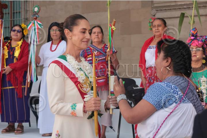 CIUDAD DE MÉXICO, 01OCTUBRE2024.- De parte de mujeres de comunidades indígenas, Claudia Sheinbaum, presidenta de México,recibe el Bastón de Mando. FOTO: DANIEL AUGUSTO/ CUARTOSCURO.COM