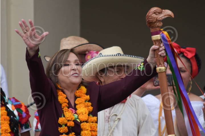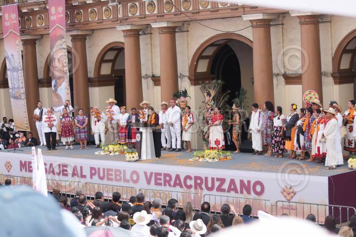 XALAPA, VERACRUZ, 01DICIEMBRE2024.- Rocío Nahle, gobernador de Veracruz, recibió de representantes de pueblos originarios un bastón de mando, momentos después de haber tomado protesta constitucional al cargo en el Congreso del Estado. FOTO: YERANIA ROLÓN/CUARTOSCURO.COM