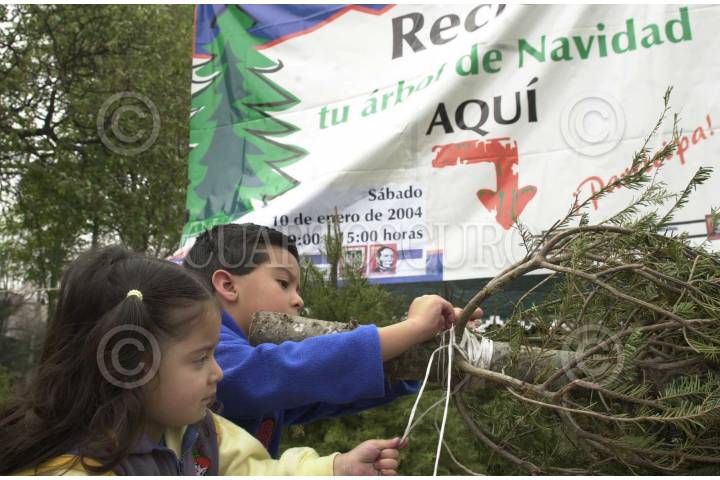 México D.F 11 ENERO 2004.- Familias del DF participaron en el programa de reciclage de pinos que organizaron las delegaciones en esta temporada navideña. FOTO: Sandra Perdomo/CUARTOSCURO.COM