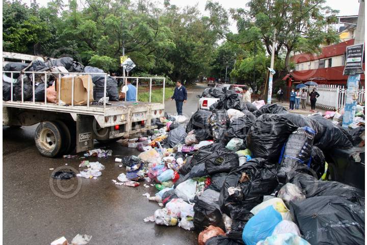 Vecinos inconformes del Infonavit 1º de Mayo, ubicado en la zona norte de Oaxaca, bloquearon el tránsito vehicular con basura que había sido dejada, debido al cierre del basurero municipal, a fin de exigir a las autoridades su recolección.