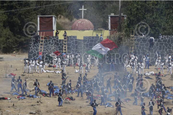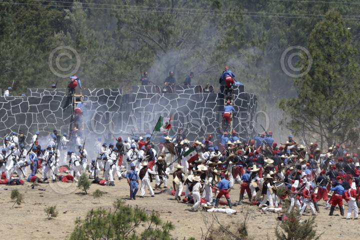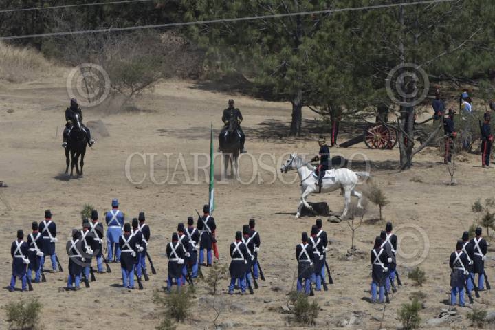 PUEBLA, PUEBLA, 06MAYO2025.- Contingentes militares llevaron a cabo la representación de la Batalla de Puebla, en el marco de su 163 aniversario. FOTO: MIREYA NOVO/CUARTOSCURO.