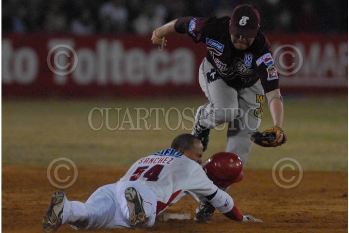 MAZATLÁN, SINALOA, 20ENERO2006.- Los Venados de Mazatlán juegan el séptimo y último juego de la serie en contra de los Tomateros de Culiacán. En la imagen, Alex Sánchez llega safe a segunda base. FOTO: DEBATE DE MAZATLÁN