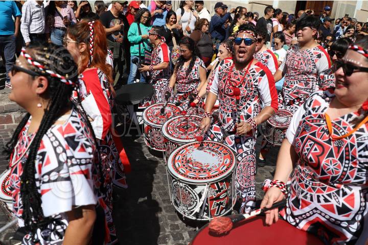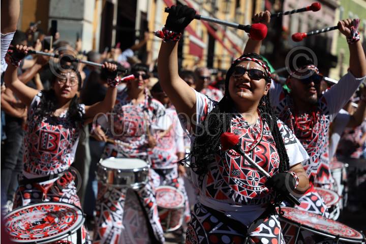 GUANAJUATO, GUANAJUATO, 20OCTUBRE2024.- El colectivo Batalá México se presentó esta tarde en el Festival Internacional Cervantino donde realizaron un recorrido por las calles de la ciudad. FOTO: DANIEL AUGUSTO/ CUARTOSCURO.COM