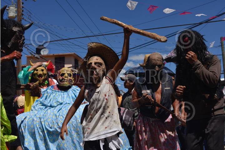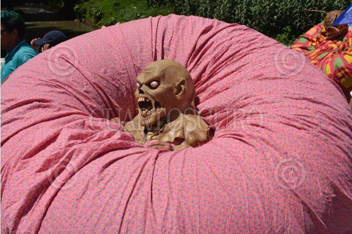 SAN CRISTOBAL DE LAS CASAS, CHIAPAS, 17AGOSTO2019.- Habitantes del barrio de San Ramón en San Cristóbal de Las Casas celebraron a su santo patrono: San Ramón Nonato, patrono de las parteras, de los cautivos y de los niños con problemas en el habla. Las actividades comenzaron con el tradicional desfile de carros alegóricos, y grupos de personas disfrazadas, entre ellos los tradicionales “panzudos”. FOTO: ISABEL MATEOS /CUARTOSCURO.COM