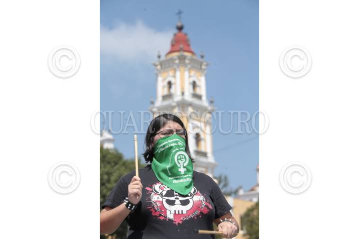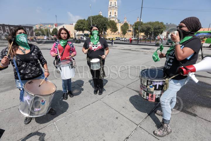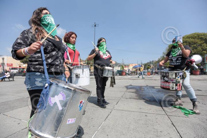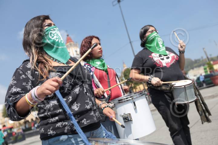 TOLUCA, ESTADO DE MÉXICO, 26SEPTIEMBRE2019.- Integrantes de DDESER Edomex realizaron una batucada como parte de la Campaña Nacional Por el Derecho al aborto libre, seguro y gratuito, como parte del movimiento #MareaVerdeMéxico. FOTO: CRISANTA ESPINOSA AGUILAR /CUARTOSCURO.COM