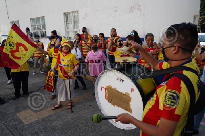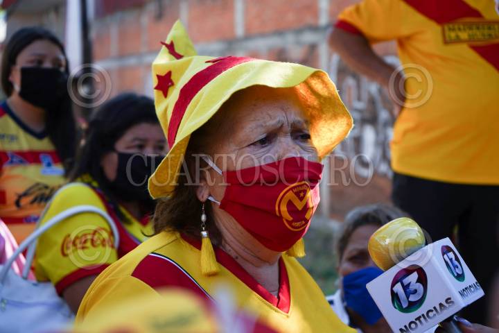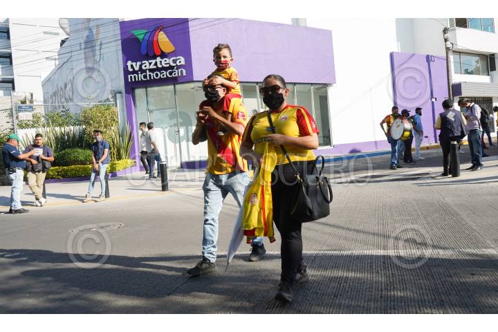 Aficionados de Monarcas Morelia en las inmediaciones de TV Azteca Michoacán, para pedir que el equipo no deje la ciudad.