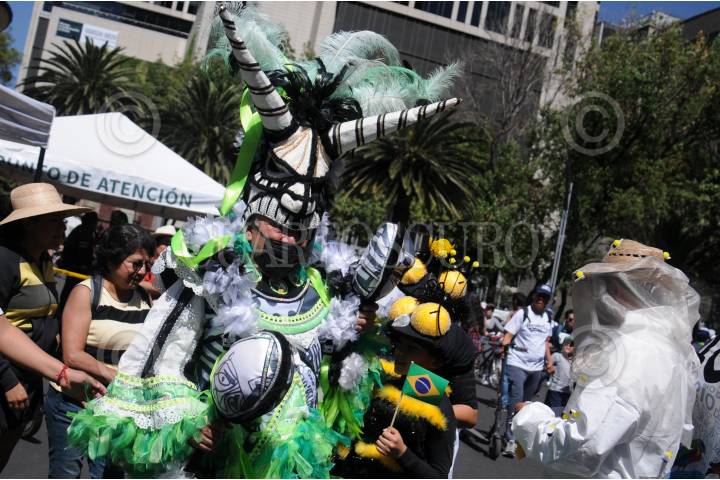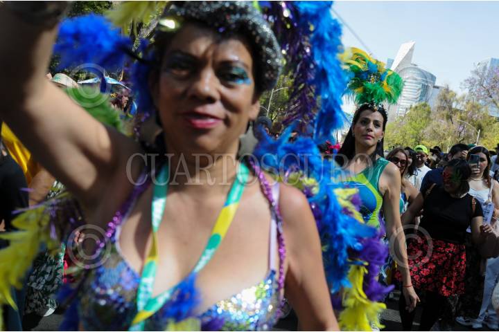 Personas participación en el Carnaval de Brasil, el cuál salió desde EL Ángel de la Independencia.