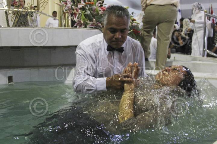 GUADALAJARA, JALISCO, 12AGOSTO2016.- Fieles pertenecientes a la Luz del Mundo fueron bautizados en la Iglesia del Bethel, una de las sedes donde se lleva a cabo la ceremonia año con año durante lo que se considerada su máxima celebración anual; "La Santa Convocación 2016" que congrega a miles de fervientes de esta Iglesia. FOTO : FERNANDO CARRANZA GARCIA / CUARTOSCURO.COM