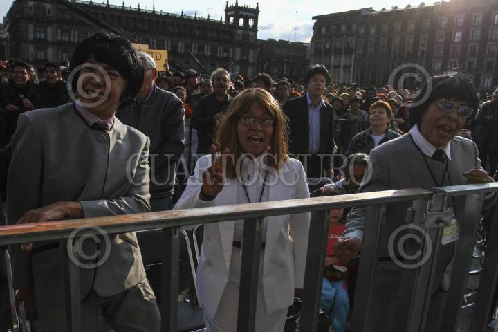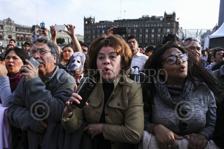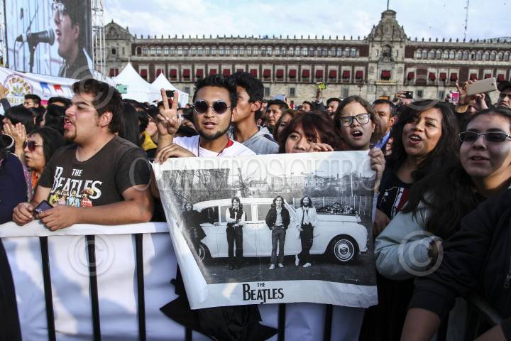 CIUDAD DE MÉXICO, 20NOVIEMBR2016.- Cientos de fans se concentraron en el Zócalo capitalino para escuchar a diversos grupos musicales tocaron covers de las famosa banda, The Beatles, el gobierno de la Ciudad realizó el homenaje al cuarteto de Liverpool. FOTO: ADOLFO VLADIMIR /CUARTOSCURO.COM