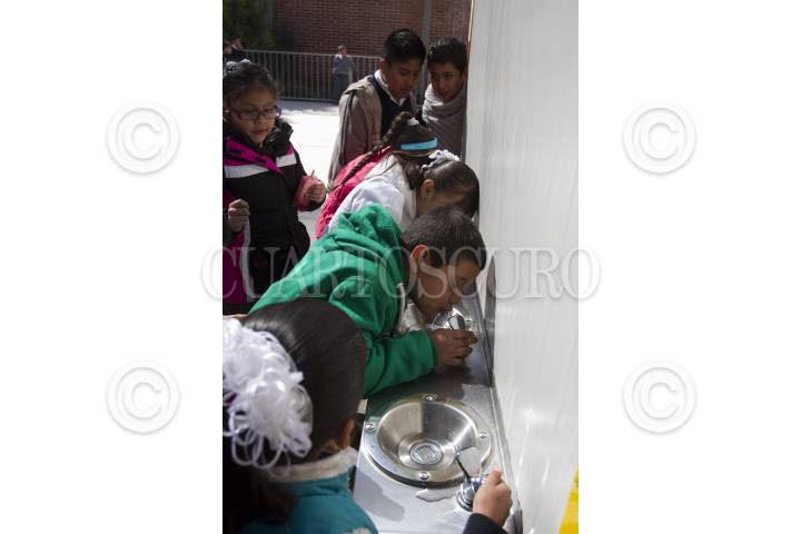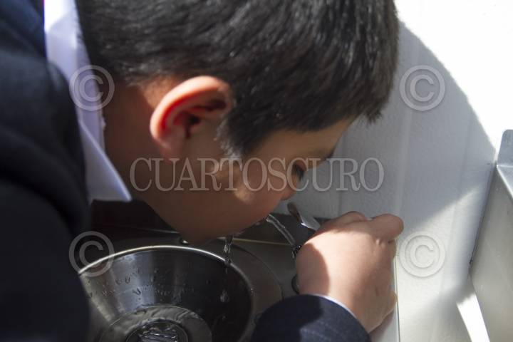 MÉXICO D.F., 24AGOSTO2015.- Miles de alumnos de preescolar, primaria y secundaria, regresaron a clases como parte del ciclo escolar 2015-2016. En la imagen un bebedero de agua para hidratar a los estudiantes fue colocado en el patio de la escuela Agustín Rivera. FOTO: SAÚL LÓPEZ /CUARTOSCURO.COM