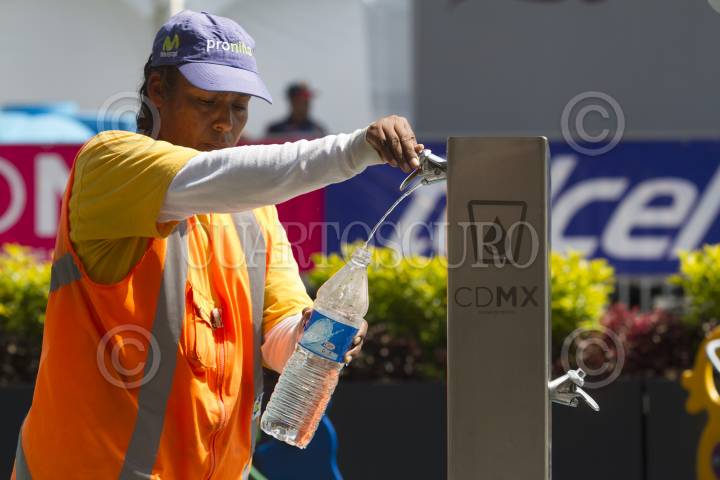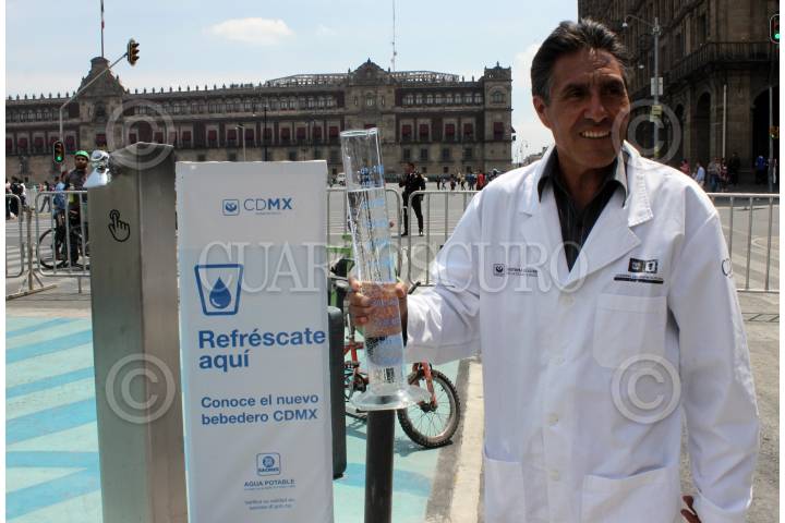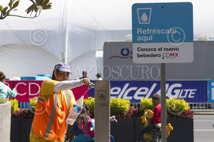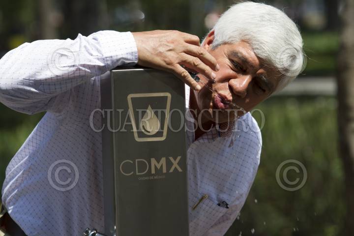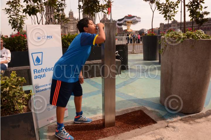 MÉXICO, D.F., 24JULIO2015.- El Sistema de Aguas de la Ciudad de México ha colocado 230 bebedores e lo largo de las 16 delegaciones del DF para estimular el consumo del vital liquido, sin embargo, en Iztapalapa sólo fueron instalados dos, y uno en Tláhuac debido a la mala calidad del agua potable en esas demarcaciones. Los bebederos están conectados directamente a la red de agua potable de las colonias, no cuentan con filtros y los encargados de su mantenimiento serán las delegaciones. Los bebederos no funcionarán las 24 horas del día, debido a que la presión del agua en las redes baja en las tardes y noches para reducir las fugas en la red de distribución de agua potable, lo que impide que haya líquido en los dispositivos recién instalados. FOTO: MOISÉS PABLO /CUARTOSCURO.COM