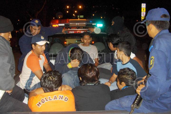 MÈXICO, D.F. 28ENERO2006.- Varios jóvenes menores de edad, quienes se encontraban ingeriendo bebidas embriagantes y escandalizaban en la vía pública fueron detenidos, por infrigir el bando de policia y buen gobierno, durante un operativo realizado en varias partes de la ciudad por parte de elementos de la policia preventiva municipal. FOTO: Oscar Alvarado/CUARTOSCURO.COM
