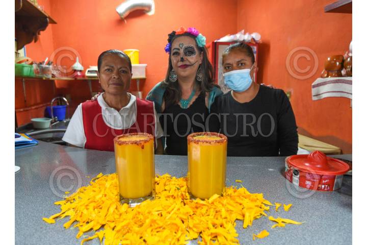 METEPEC, ESTADO DE MÉXICO, 27OCTUBRE2024.- El pulque es una bebida prehispánica con muchas propiedades nutritivas, en la Pulqueria La Revolución de Mayahuel durante la temporada de Día de Muertos, ofrecen desde hace 10 años el curado de cempasúchil, Makehua Octli en náhuatl significa Guardián del Pulque, es la tercera generación a cargo de esta pulqueria, en donde buscan rescatar el consumo de esta bebida de los Dioses; combinando dos elementos ancestrales como el pulque y el cempasúchil, el cual proviene de campos mexicanos, para obtener el sabor ideal se deja macerar la flor, buscando exaltar la gastronomía mexicana. A partir del 26 de octubre está disponible durante un mes, y también se ofrecen alrededor de 30 sabores como Mango, guayaba, frutos rojos, piña, avena, cacahuate, vitamínico, cacao, cacao con mezcal, apio, pistache con queso, vampiro, abren todos los días y es un lugar totalmente familiar ubicado en el Barrio de San Mateo en Metepec, en las calles de Matamoros y Galeana. FOTO: CRISANTA ESPINOSA AGUILAR /CUARTOSCURO.COM