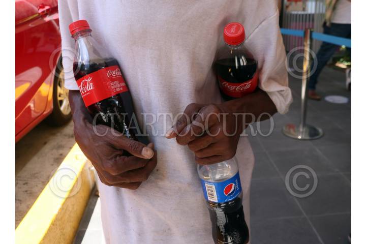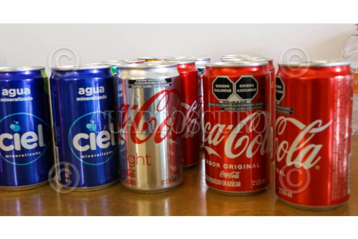 Un hombre sostiene en sus manos tres refrescos, en México las bebidas azucaradas son responsables de mas de 24 mil muertes anuales.