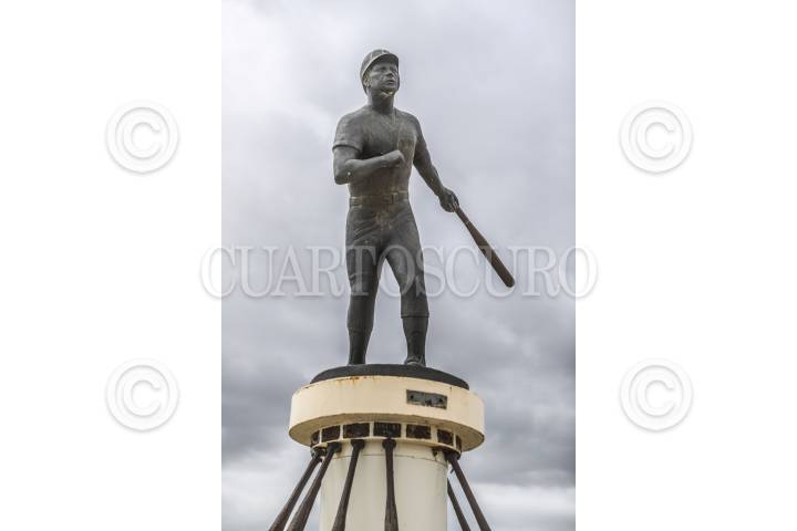 HERMOSILLO, SONORA, 07SEPTIEMBRE2016.- Hoy se celebra el aniversario luctuoso del beisbolista Héctor Espino, conocido como el "Superman de Chihuahua". La estatua, ubicada a un costado del estadio de Sonora, ha sido afectada por actos vandálicos y robo de piezas que se venden como fierro viejo. FOTO: LUIS GUTIERREZ/ NORTEPHOTO /CUARTOSCURO.COM