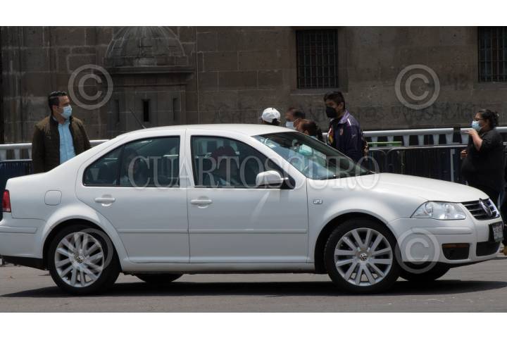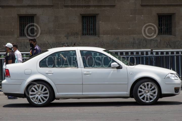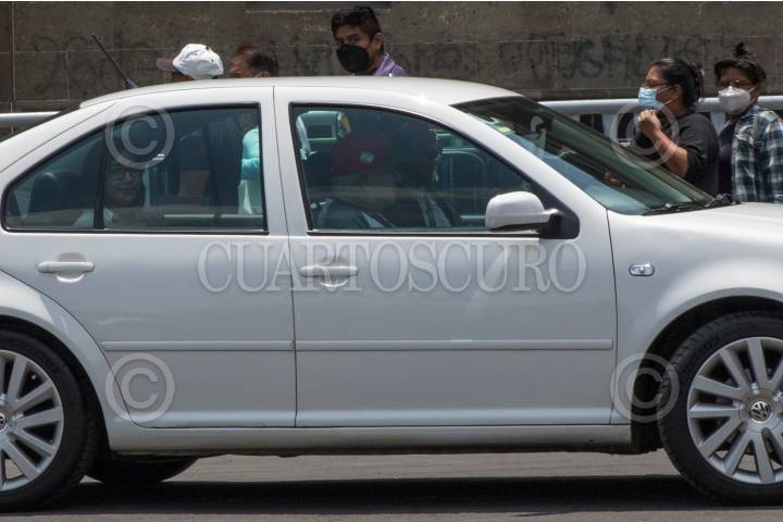 Andrés Manuel López Obrador, Presidente de México, sale de Palacio Nacional a bordo de un auto tipo sedán de color blanco, el mandatario iba vestido con gorra y playera de beisbolista.